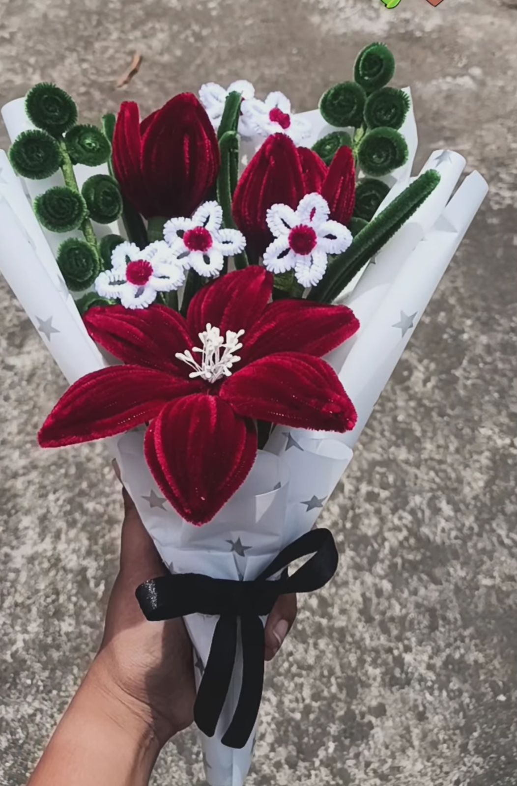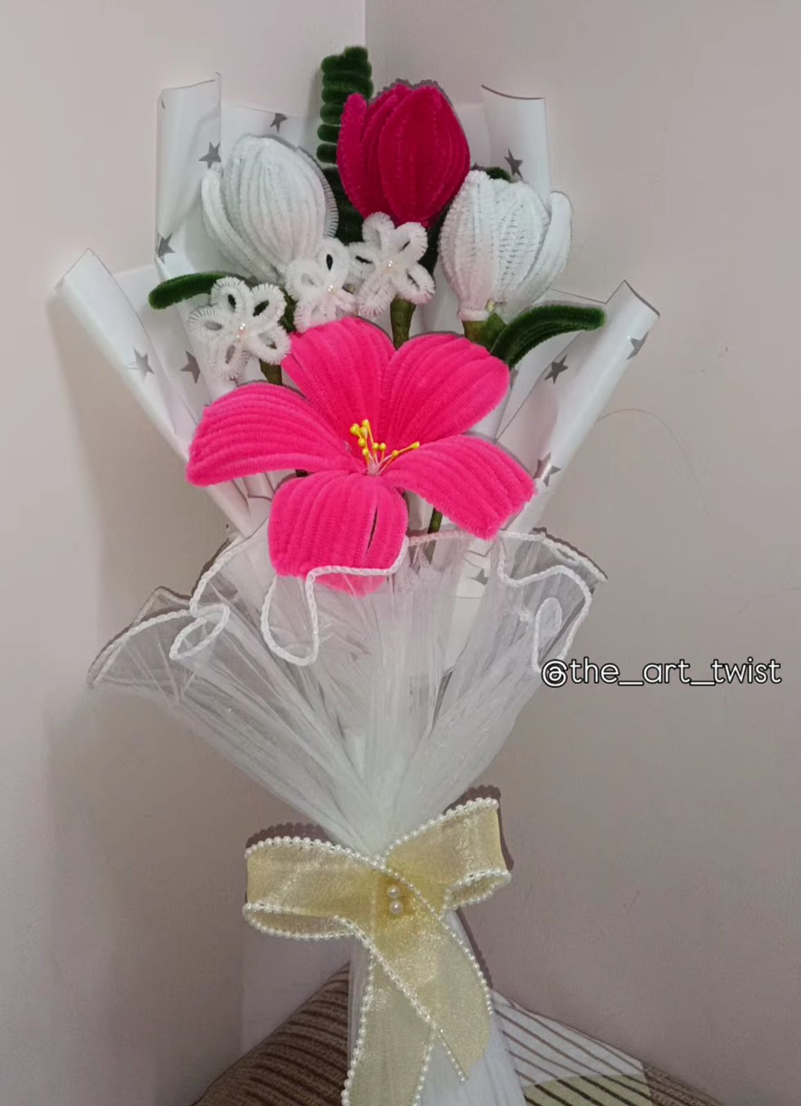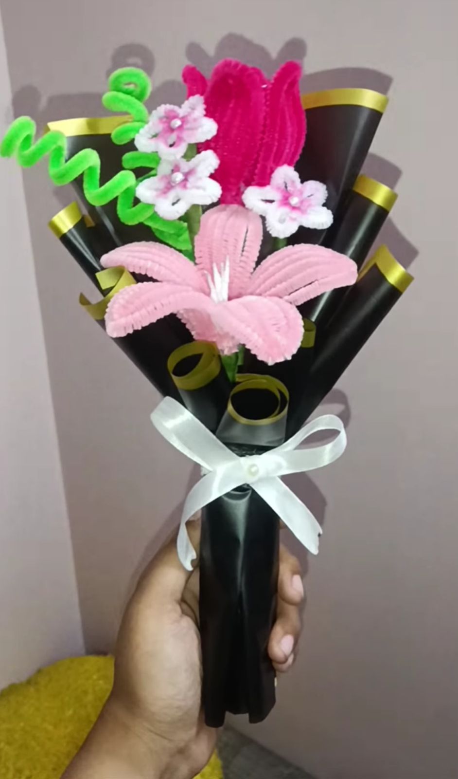 Chenille wire bouquets, flower pots, and keychains — handcrafted blooms that never fade.